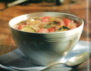 Una volta raffreddato, rovesciate il contenuto della scodella nel piatto di portata, servendo i minestrone come fosse un budino.
