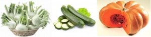 Tagliare la zucca a fettine molto sottilie le zucchine ed i finocchi a bastoncini.